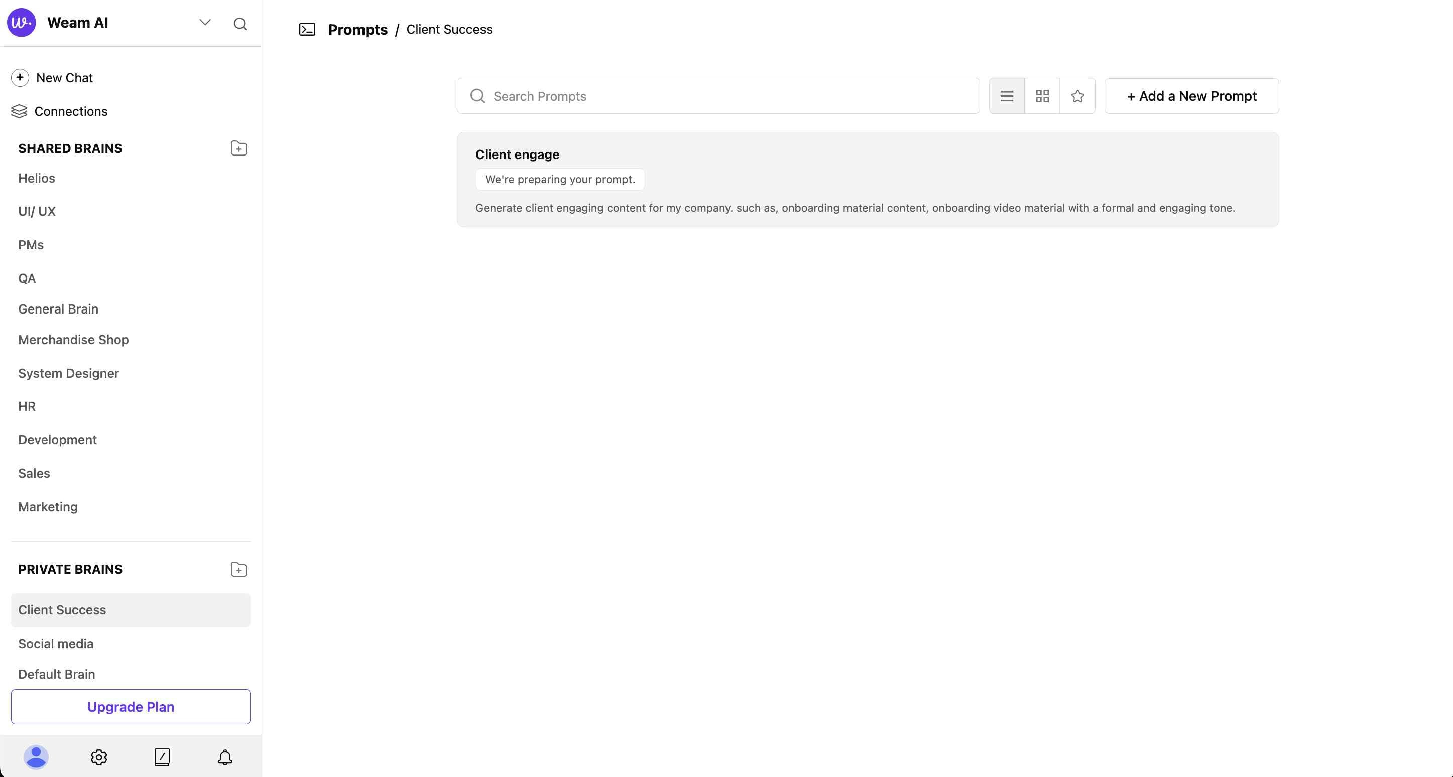 - Browse Available: View prompts with their Brain associations (e.g., “Shared / PMs”)